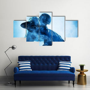 This canvas shows silhouetted American football players in a dynamic action shot, with smoky effects and a blue, black, and white palette. The modern, dramatic composition delivers an intense, powerful, energetic feel that works well in modern homes and sports-themed rooms.