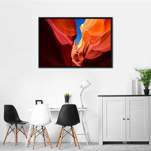 This landscape canvas art captures the awe-inspiring beauty of Antelope Canyon, showcasing its dramatic slot canyon walls and vibrant sky. The swirling rock formations, bathed in sunlight, create a natural and captivating scene.