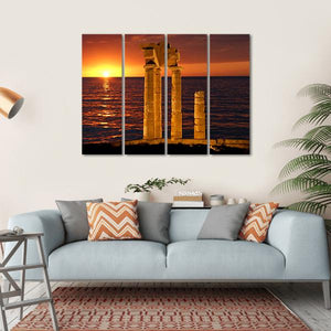Capture the essence of ancient Greece with this stunning canvas art featuring the majestic Apollo Temple. The serene sunset casts a warm glow over the ocean, reflecting vibrant shades of orange, yellow, and blue. This piece evokes a nostalgic atmosphere, perfect for any room in your home.
