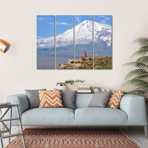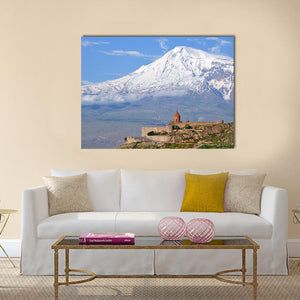 Explore the serene beauty of the Khor Virap Monastery with this canvas wall art. Featuring a snow-capped mountain, an ancient fortress, and a church, it evokes a majestic and historical vibe. This piece adds a touch of tranquil elegance to any space.
