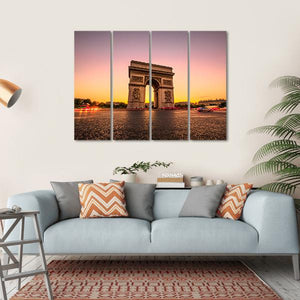 Celebrate the iconic Arc de Triomphe with this stunning canvas art. Featuring a dynamic view of Paris during sunset, the palette of oranges and purples creates a grand and romantic atmosphere. Perfect for bringing urban elegance into your decor.