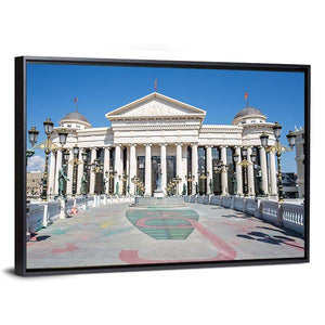 This canvas wall art features a grand view of the Eye Bridge in Skopje, showcasing its stunning neoclassical architecture. With a symmetrical composition and a sunny, clear atmosphere, it brings an inviting touch to any space.