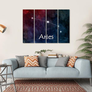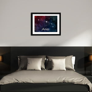 This captivating artwork features the Aries zodiac sign set against a cosmic backdrop of stars. With its vibrant palette of blue, red, and purple, it brings a mysterious and celestial feel to any space, making it a great addition to your wall decor.
