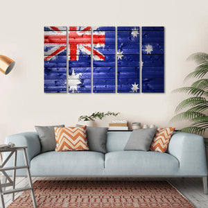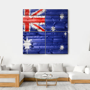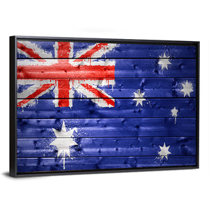 Showcasing the Australian flag on a rustic wooden texture, this canvas art evokes a sense of bold patriotism. The rich palette of blue, red, and white creates a striking visual that enhances any space.