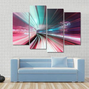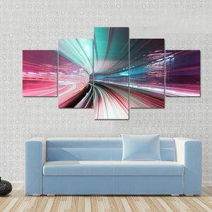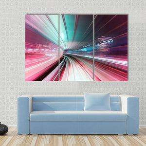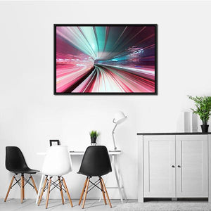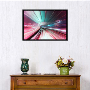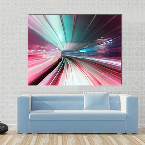 This canvas art captures the vibrant energy of Japan's nightscape, showcasing dynamic light trails and a futuristic tunnel. Its bold palette of pink, teal, white, and blue adds a colorful touch, perfect for modern wall decor.