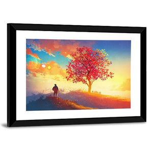 Autumn Landscape with Alone Tree Canvas Wall Art