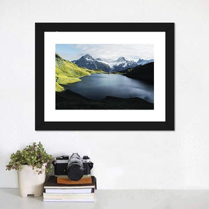 Lake In Swiss Alps Panoramic Canvas Wall Art
