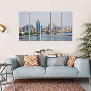 Experience the vibrant Baku skyline with this canvas wall art. The eye-level view captures modern architecture alongside the tranquil Caspian Sea, bringing an urban and scenic feel to your space.