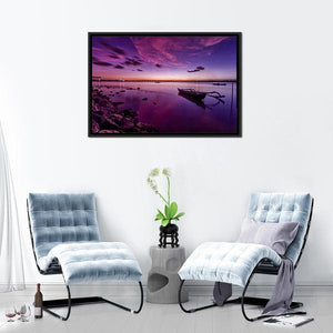Experience the serene beauty of Bali with this canvas wall art featuring a vibrant sunset over the ocean. Silhouetted boats and dramatic clouds evoke a peaceful atmosphere, making it an ideal addition to your home decor.