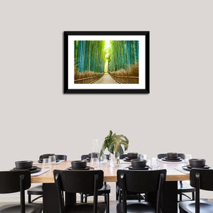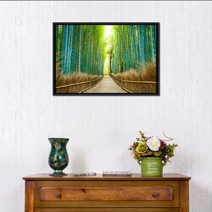 Capture the serene beauty of a bamboo forest with this canvas wall art, featuring a tranquil pathway leading into the lush greenery. Sunlight filters through the bamboo leaves, creating a peaceful atmosphere that enhances any space.