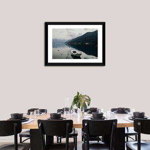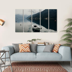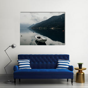 Bring a piece of Montenegro home with this serene canvas featuring a small white rowboat drifting on calm waters. The tranquil scene, showcasing mountains and a cloudy sky, evokes feelings of peace and relaxation, making it perfect for any modern décor.