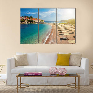 Experience the serene beauty of Sveti Stefan Island with this vibrant canvas wall art. Aerial views capture the tropical atmosphere, featuring clear turquoise waters and charming red-tiled roofs. Perfect for creating a relaxing escape in any room.
