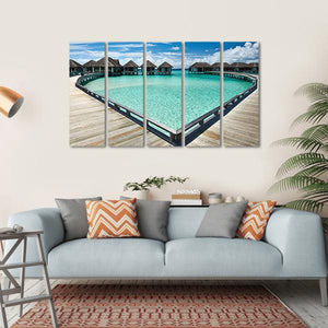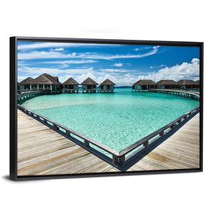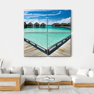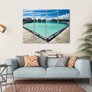 This canvas features serene overwater bungalows set against a vibrant ocean and clear sky, evoking a tropical escape. The photorealistic style captures the beauty of nature, perfect for bringing a peaceful atmosphere to any space.
