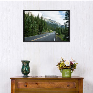 Capture the serene beauty of the Beartooth Highway with this captivating canvas wall art. A winding road leads through a misty forest, bordered by tranquil gray and green tones, evoking a sense of adventure and mystery. Perfect for elevating any landscape decor.