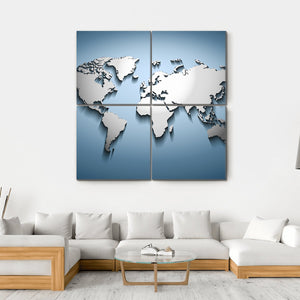 This embossed world map canvas features a modern design with raised continents and a captivating shadow effect. Its blue, white, and gray palette creates a geographic vibe, making it a striking addition to any wall.