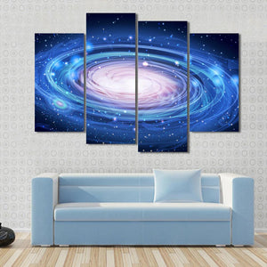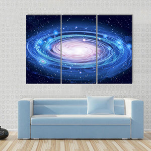 This abstract canvas art captures the beauty of the Andromeda galaxy, featuring a mesmerizing swirling nebula filled with glowing cores and spiral arms. The vibrant blues, purples, and soft pinks create a cosmic atmosphere, making it a captivating addition to any modern space.