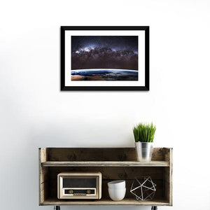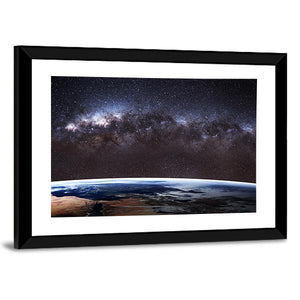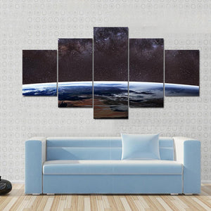 This canvas art beautifully captures the Milky Way galaxy and Earth from space, inviting awe with its vast, cosmic perspective. With stunning details like visible stars and cloud formations, it adds a modern touch to any wall décor.