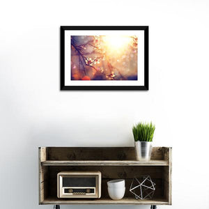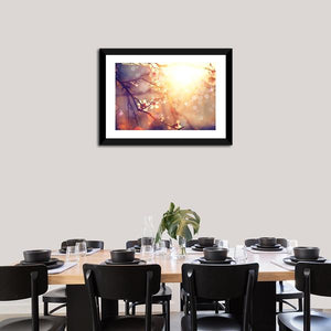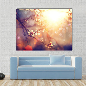 This canvas art features a serene scene of cherry blossoms on a tree branch, illuminated by gentle sunlight. With its dreamy and impressionistic style, it adds a warm touch to any space.