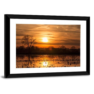 This canvas art captures the serene beauty of a sunset over calm waters, featuring a dramatic silhouette of a tree. With its warm palette of oranges and browns, it evokes a peaceful atmosphere, perfect for any nature lover's décor.