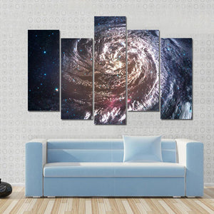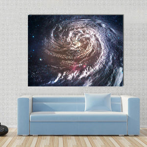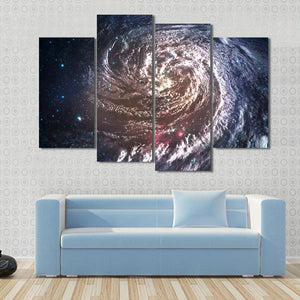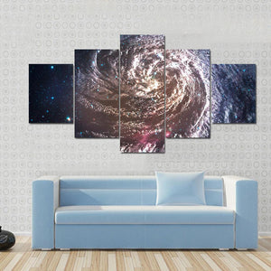This canvas wall art features a stunning abstract depiction of a spiral galaxy, showcasing a cosmic blend of purple, blue, and gold. Its swirling patterns and glowing core create an awe-inspiring depth that captivates the imagination.