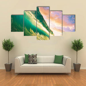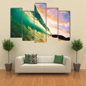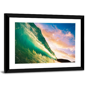 This stunning canvas captures the beauty of an ocean wave at sunset, offering a serene yet dramatic feel. The vibrant colors and dynamic perspective will enhance your living space.