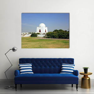 This canvas features the iconic white domed building of Mazar-E-Quaid set against a serene blue sky, lush green grass, and trees. Its peaceful and bright atmosphere makes it a beautiful addition to any space.
