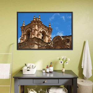 Capture the beauty of the Bell Tower of Puno with this striking canvas wall art. The majestic view features ornate stonework and a visible bell, set against a backdrop of blue skies and white clouds. This artwork adds a grand, historic touch to your space.