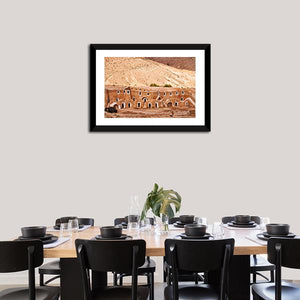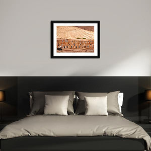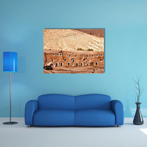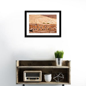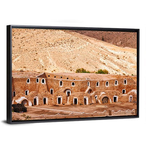 This canvas art captures the serene beauty of an ancient Berber dwelling set against a textured desert hillside. The warm palette of tan, ochre, and brown evokes a historic atmosphere, making it a thoughtful addition to any wall decor.