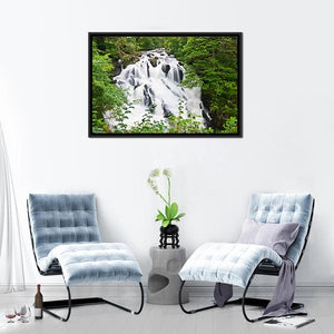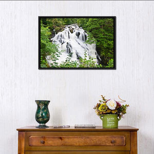 This canvas art captures the serene beauty of Betws-y-Coed's waterfalls, framed by lush forests and rugged rocks. The natural palette of greens, whites, and browns evokes a calm, dynamic atmosphere, making it a lovely addition to any nature-inspired décor.