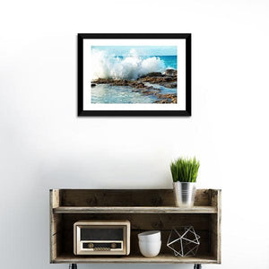 This stunning piece features dynamic ocean waves crashing against wet rocks, capturing the energy of nature. The rich palette of blue, white, and brown conveys a powerful and natural atmosphere, making it a captivating addition to your wall decor.