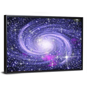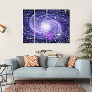 This artwork features a stunning representation of a galaxy, with swirling arms and a bright central core. The vibrant hues of purple, pink, and blue evoke a cosmic and mysterious atmosphere, making it a captivating addition to your wall decor.