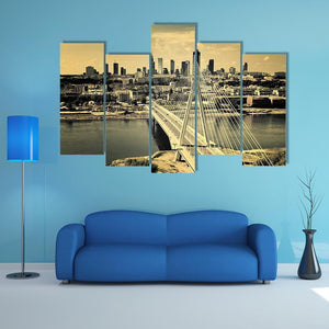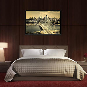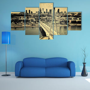 This canvas art captures a grand, historic view of a cable-stayed bridge against a rich city skyline. The vintage tones of sepia, brown, and gray create a timeless atmosphere, perfect for enhancing any urban decor.