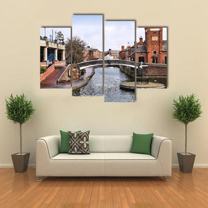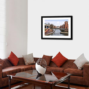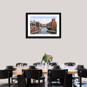 This landscape canvas captures the serene charm of an urban canal scene. Featuring a stone bridge, gentle rippling water, and historic buildings, it evokes a calm and inviting atmosphere, perfect for enhancing your space.