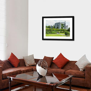 This canvas art features the majestic Birr Castle set against a serene landscape. The realistic depiction celebrates lush greenery, blooming flowers, and a winding path, creating a picturesque atmosphere.