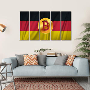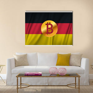 This canvas art features the striking Bitcoin symbol set against the national flag of Germany. With its bold palette of black, red, yellow, and a captivating gold 3D effect, it embodies a modern and digital vibe that will enliven any space.