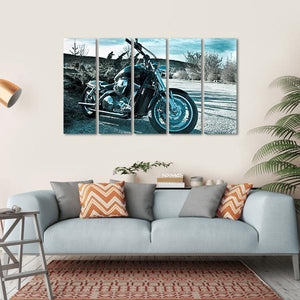 This striking canvas art features a black motorcycle against a backdrop of trees and a dramatic sky. Capturing a sense of power and adventure, it makes a perfect addition to a modern room decor, creating a rugged yet stylish atmosphere.