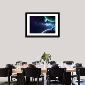 This cosmic canvas art captures the beauty of a glowing nebula, planets, and streaking meteors, evoking a mysterious and awe-inspiring atmosphere. Ideal for adding a modern touch to any space.