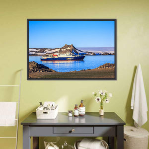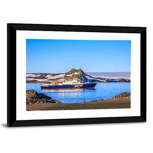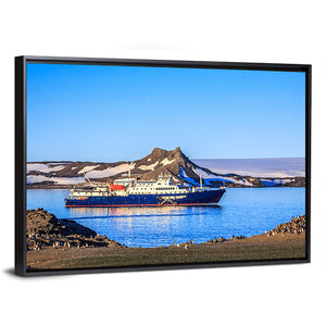 This captivating canvas features a large cruise ship docked amidst a serene Antarctic landscape. With snow-capped mountains in the background and a colony of penguins on the shore, it evokes a sense of adventure while adding a tranquil touch to your space.