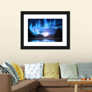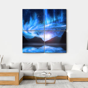 This canvas wall art captures the mesmerizing aurora borealis dancing over majestic mountains under a starry night sky. With deep blues and serene purples, it evokes a mystical atmosphere that brings peace and wonder to any space.