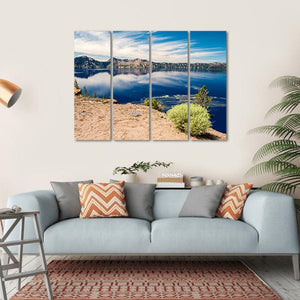 Immerse yourself in the serene beauty of Crater Lake with this stunning canvas art. Featuring a calm lake reflecting majestic mountains and a clear sky, this piece invites a peaceful atmosphere into your space.