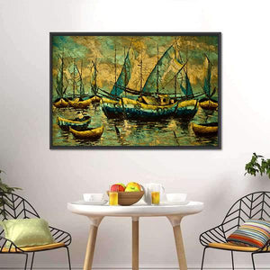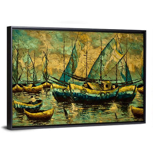 This canvas features serene sailboats gliding across blue waters under a calm sky. The painterly style, with thick brushstrokes and reflections on the water, creates a tranquil atmosphere that enhances any space.
