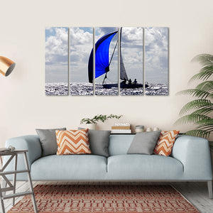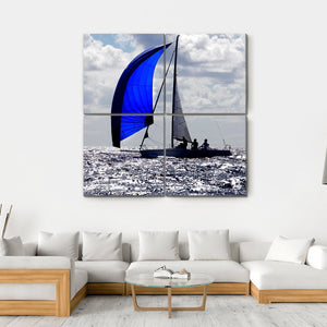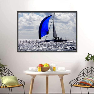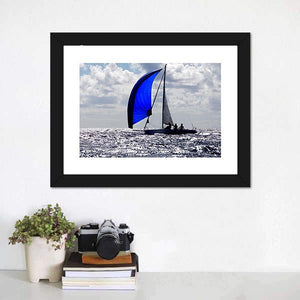 Experience the thrill of sailing with 'Boats With Spinnakers,' featuring dynamic sailboats gliding over choppy waters under a vibrant sky. This photorealistic artwork captures the adventure of ocean sailing, perfect for those who love the sea.