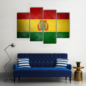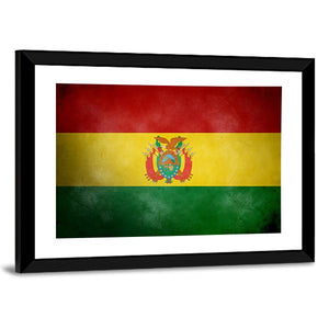 Celebrate Bolivia's spirit with this vibrant flag canvas art. The bold colors of red, yellow, green, blue, and gold represent patriotism and strength, featuring a prominent coat of arms. It adds a textured, vintage touch to any wall.