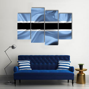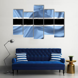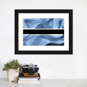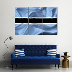 This canvas shows the Botswana flag as an abstract, symmetrical square with a soft, wavy fabric texture suggesting motion. Its blue, black, and white palette and modern, patriotic mood suit contemporary rooms and modern home décor.