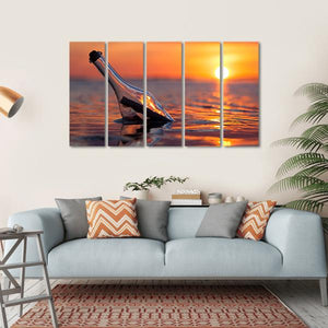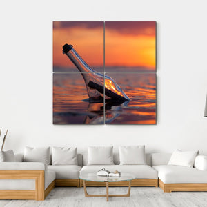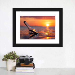 This striking canvas artwork captures a serene ocean scene at sunset, featuring a message in a bottle gently resting on the beach. With its warm palette of orange and yellow reflecting on the water, it evokes a hopeful and peaceful atmosphere, perfect for any nature lover's space.