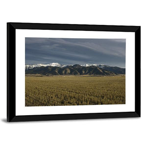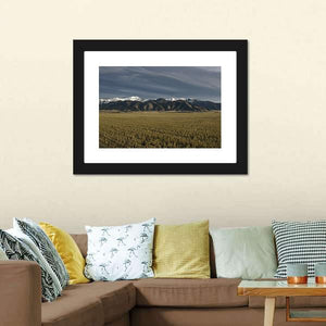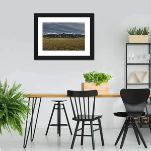 This panoramic canvas captures the snow-capped Bridger Mountains, surrounded by a serene grassy field and a cloudy sky. The composition evokes a natural and vast atmosphere, making it a wonderful addition to any space that celebrates nature.