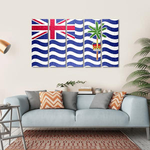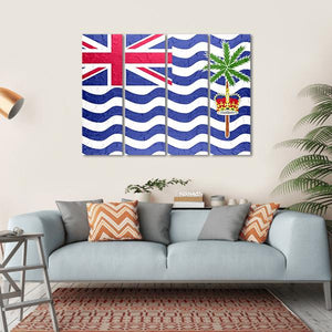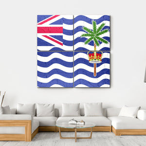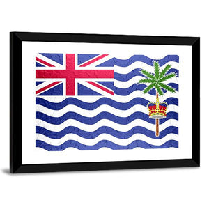 This canvas features the British Indian Ocean Territory flag, showcasing a regal crown and a stylized Union Jack in the canton. The vibrant blues and whites, paired with hints of red and gold, create a patriotic and tropical atmosphere.