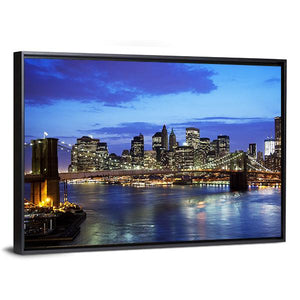 Brooklyn Bridge At Night Panoramic Canvas Wall Art