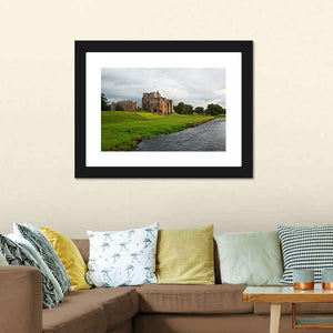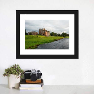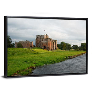 This canvas wall art captures the serene beauty of Brougham Castle amidst a flowing river and grassy hill. The rustic tones of gray and green evoke a historic atmosphere, perfect for adding a touch of nature to any space.