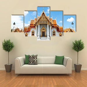 This canvas artwork features a stunning depiction of a Buddhist temple, showcasing its ornate facade and tiered roofs against a bright blue sky. The serene composition invites tranquility, making it a beautiful addition to any modern decor.